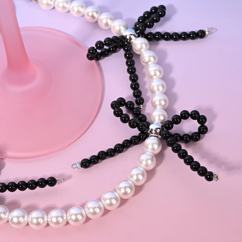 This elegant pearl bow keychain is a perfect blend of style and practicality. The carefully designed black and white color scheme showcases a fusion of classic and modern elements, adding a touch of sophistication and elegance to your everyday accessories.