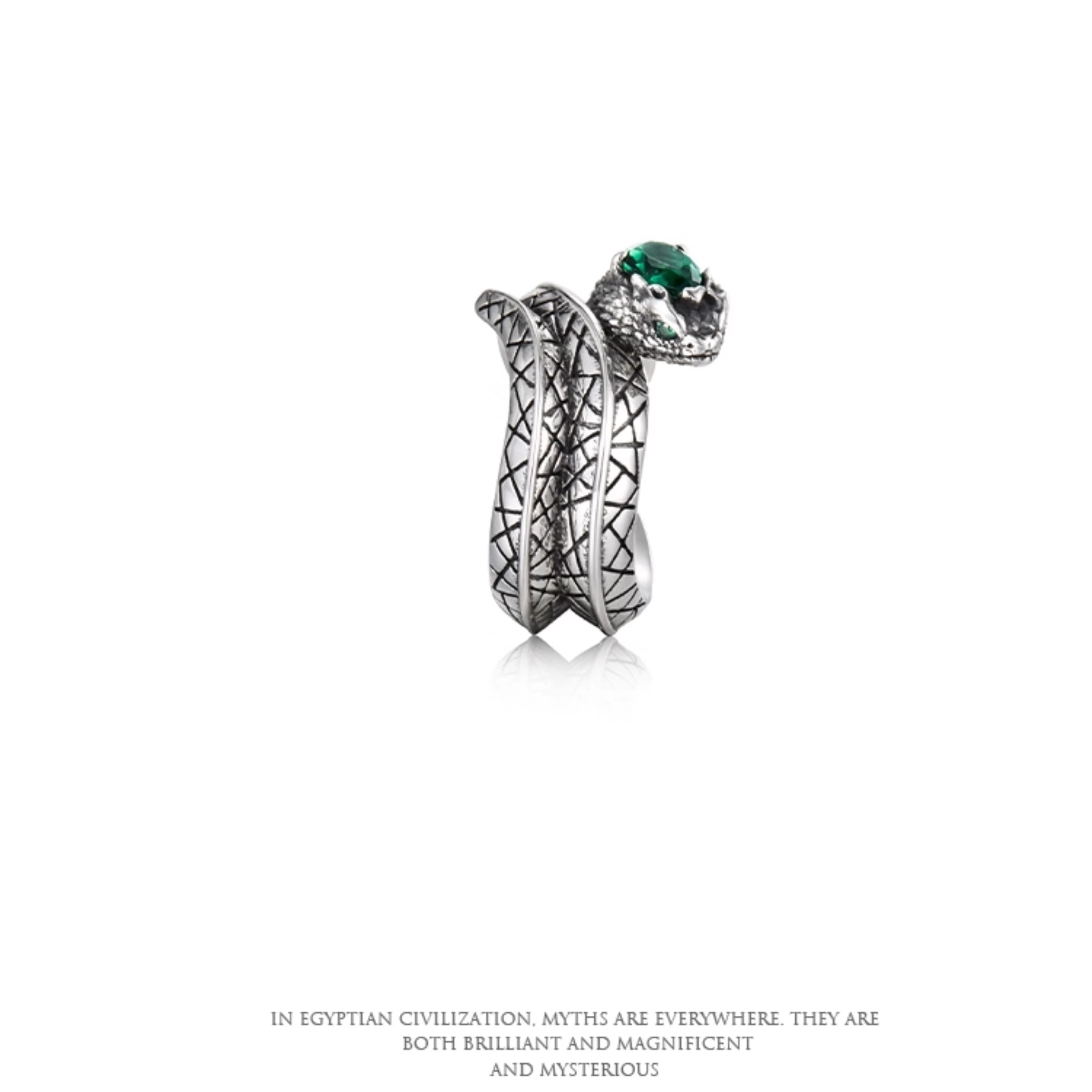 Through an original handcrafted design, the ancient mystical motif is reimagined with contemporary artistry and sculptural refinement. The sleek, flowing silhouette mirrors the serpent’s graceful strength, while the gem-inspired detailing reveals inner resilience and clarity — a reminder that true power comes from within.