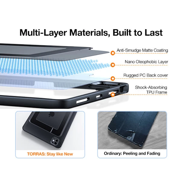 UNBEATABLE STURDINESS & STABILITY: Its dual stands are made of aviation aluminum and use the exclusive Tora-Hold tech enhances hinge damping. It's extremely solid, passing over 30,000 durability tests and giving your iPad super stable support.